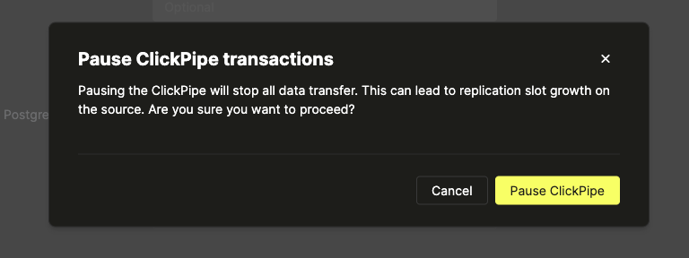 Существуют сценарии, когда полезно приостановить MongoDB ClickPipe. Например, вам может понадобиться проанализировать имеющиеся данные в неизменном виде. Или вы можете выполнять обновления MongoDB. Ниже описано, как можно приостановить и возобновить работу MongoDB ClickPipe.